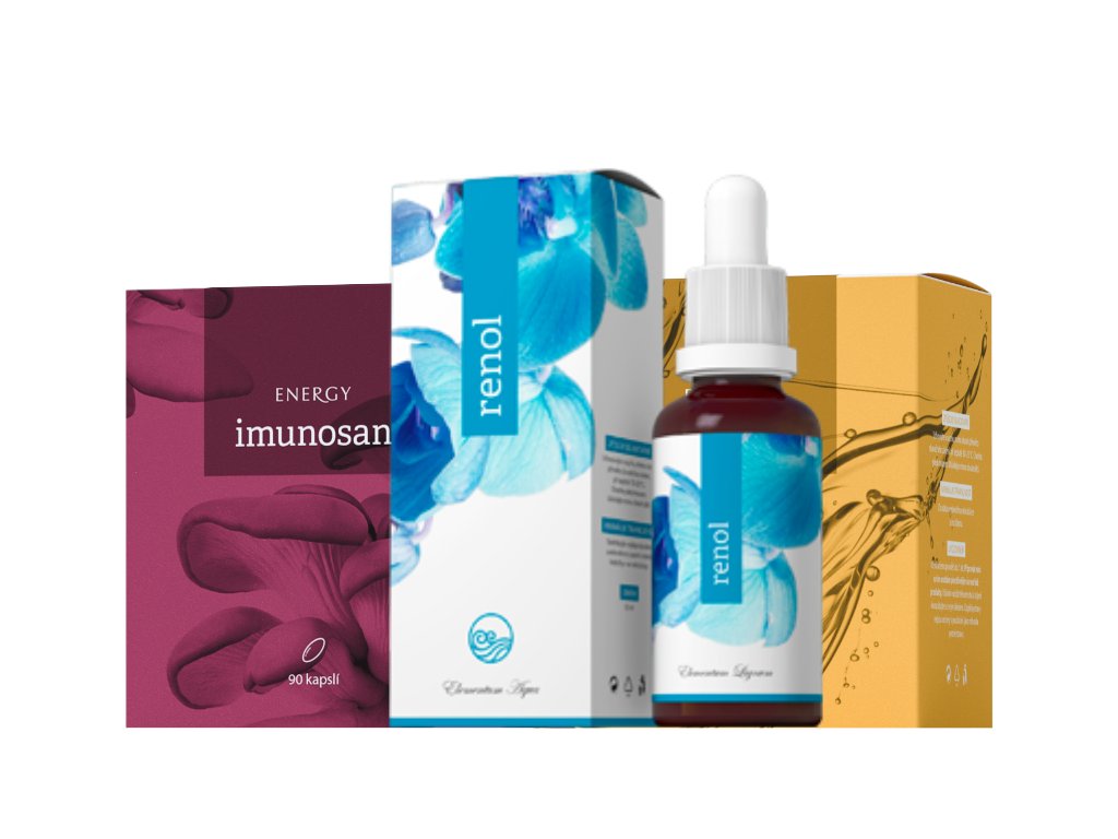 Doplněk stravy. Kapky Renol obsahují například jehlici trnitou, jež udržuje zdraví močových cest a ledvin. V Imunosanu se nachází reishi neboli lesklokorka lesklá, která podporuje přirozenou obranyschopnost a imunitní systém. Vitamarin obsahuje omega 3 nenasycené mastné kyseliny.